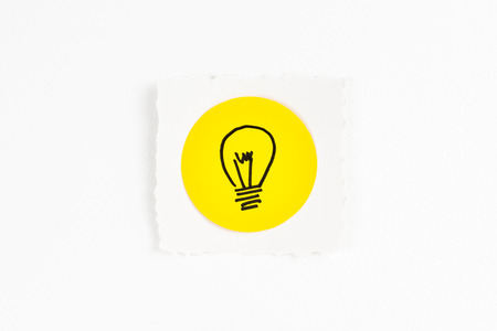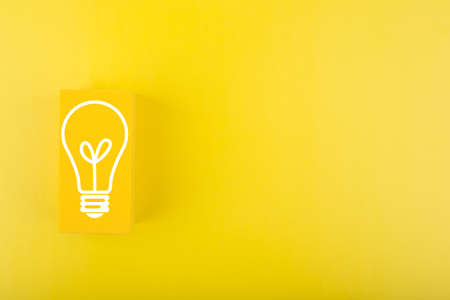 Creativity, innovation and idea concept. Light bulb drawn on yellow rectangle on yellow background with copy space