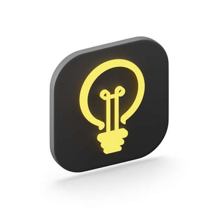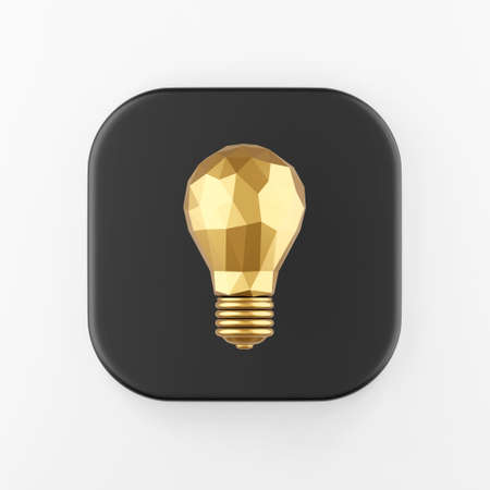 Gold low poly light bulb icon. 3d rendering black square key button, interface ui ux element