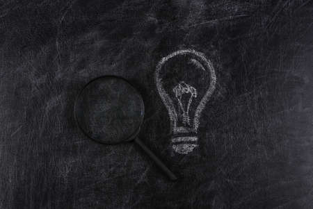 Bombing bubble with the word IDEA drawn with chalk on a blackboard background