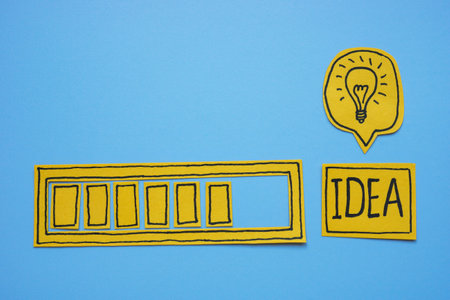 Progress bar of idea and bulb. Creativity development and innovation process.