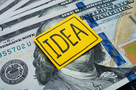 banknotes and hand holding color cubes with bulb icons or concept ideas