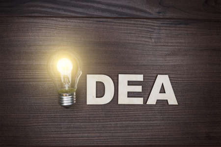 The concept of new idea. Filament light bulb in the shape of the word idea .