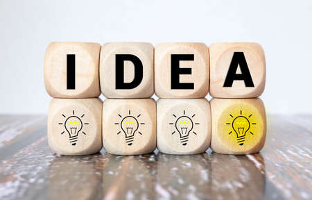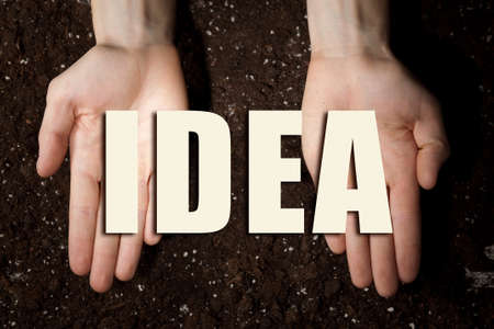 The word idea close up. New idea, plan, action, goal sequence of actions. clear algorithm. The need for new tactics and strategies, a business idea. All in your hands