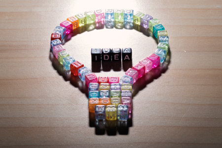 IDEA inside LIGHT BULB, by colorful alphabet beads
