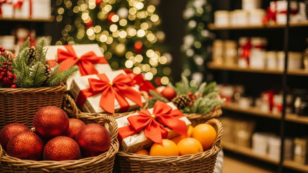Discover a charming arrangement of elegant gift baskets filled with decorations and soft textures, perfect for any holiday celebration or special occasion.