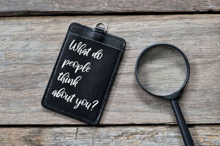 Name tag written with question WHAT DO PEOPLE THINK ABOUT YOU?
