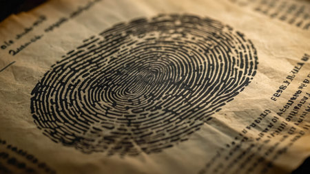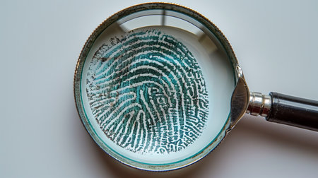 A close view of a fingerprint reveals unique ridges and patterns illuminated by artificial lighting.