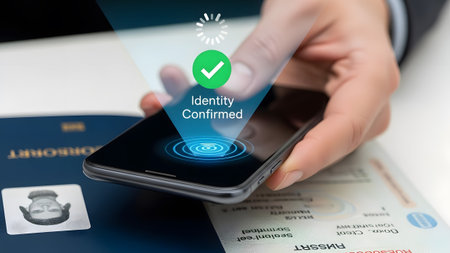 Smartphone scanning passport with identity confirmed holographic interface and checkmark
