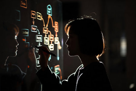 close up of hand showing illuminated light bulb icon on a wooden block puzzle as innovation concept