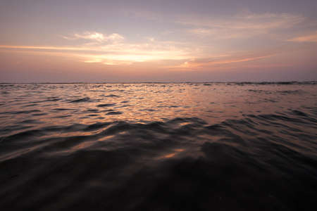 Sunset and waves in ocean