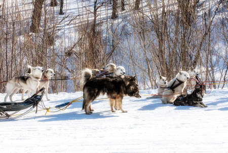 KAMCHATKA, RUSSIA - MARCH 3, 2014: Traditional Kamchatka Sled Dog Racing Beringia. Russian Federation, Far East, Kamchatka Peninsula.