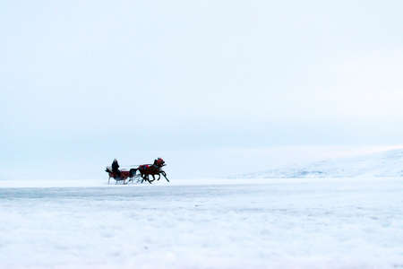 Sledding Sled dog lapland winter in Inari Nellim frozen lake