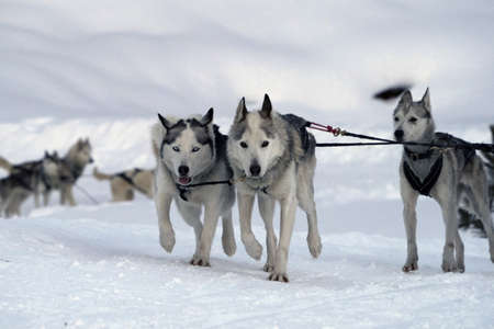 Siberian husky sled dog race in Lapland, Finland