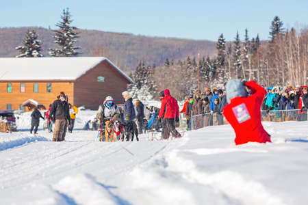Fairbanks, MAR 16 2015 - Sunny view of dog sledding competition