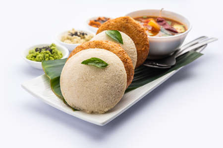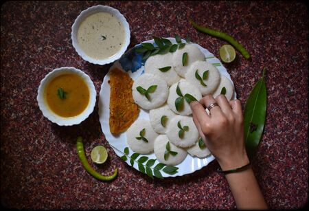 Traditional breakfast of South India IDLY served with sambar Chutney