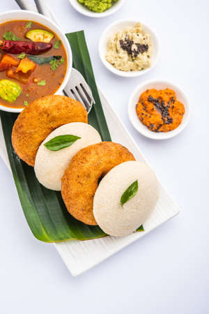 idli vada with sambar pr sambhar also called medu wada rice cake