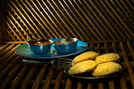 Healthy and tasty homemade masala idli for a morning breakfast