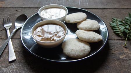 Delicious home made Rava idli with chutney on the table