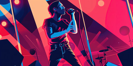 Vector illustration of a male vocalist performing on stage. Pop art style.