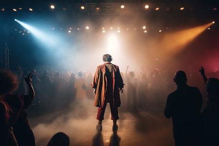 Fictional clown on stage under spotlights made with generative AI