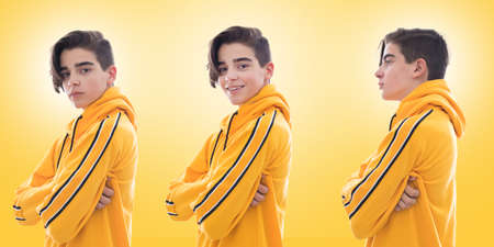 Group of young asian people with colorful hairstyle in studio.