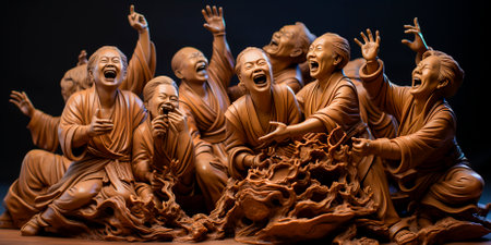 Scene of a group of Thai Buddhas laughing. Don't you wish you knew the punch line? Bringing everyone together with their infectious laughter, these Thai Buddhas bring joy to everyone who sees them!
