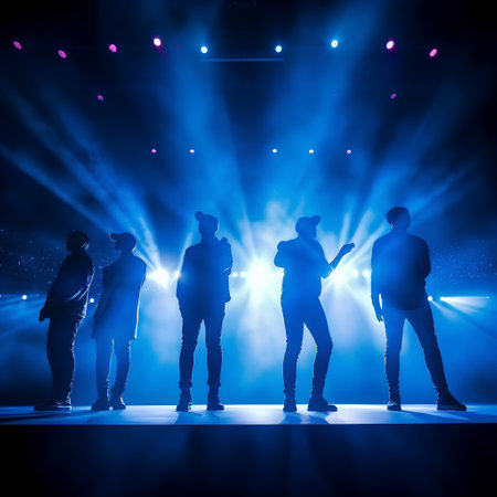 Silhouettes of a group of people watching a live concert on stage