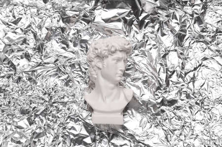 Antique david statue on crumpled metal foil