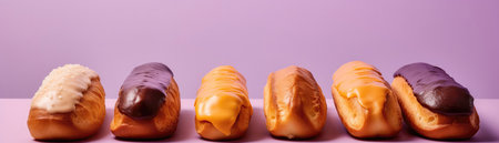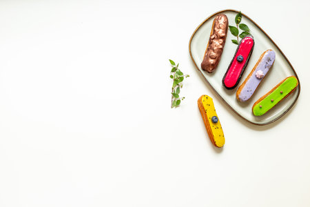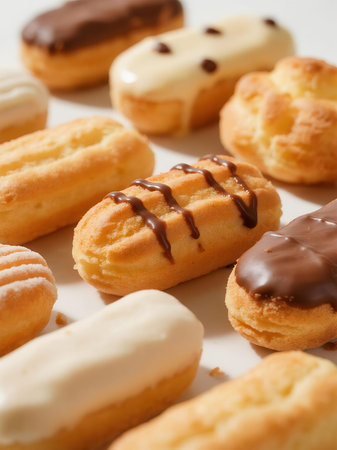 Generative AI : Assortment of eclairs traditional french dessert Copy space Top view