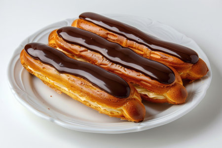 Generative AI, Chocolate eclairs side view, sweet food. Traditional French dessert