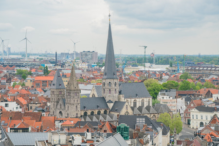 Aerial view of the beautiful Sint-Jacobskerk church and Ghent cityscape at Belgium
