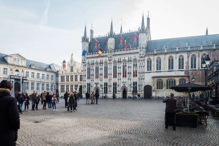 Belgium Bruges 30th October 2016 Burg square with town hall in medieval city Brugge