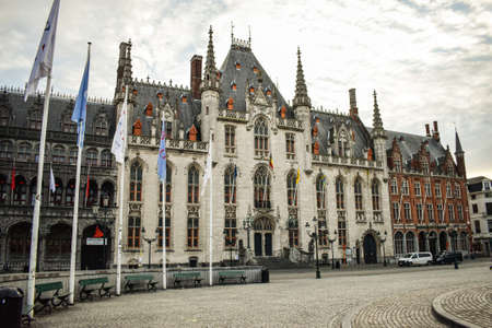 Brugge/Belgium - 26/10/2019: Beautiful houses of the main city square.