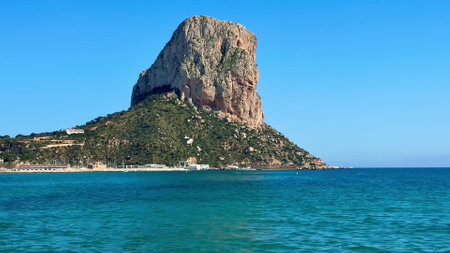 Scenic view of Calpe's de Ifach rock formation under a clear blue sky, Comunidad Autonoma de Valencia