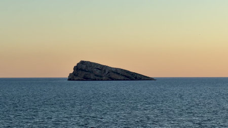 Ifach Rock in Calpe. Mediterranean sea during the blue hour.