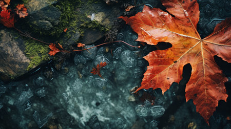 a glacier showcasing the abstract beauty of fallen leaves, moss, and branches, with a focus on textures and patterns. utilizing macro photography techniques, experiment with angles and compositions to capture the intricate details. enhance the earthy tones during post-processing for visually striking images. ai generated