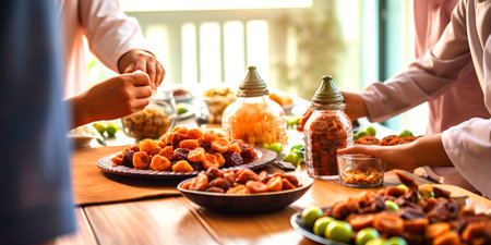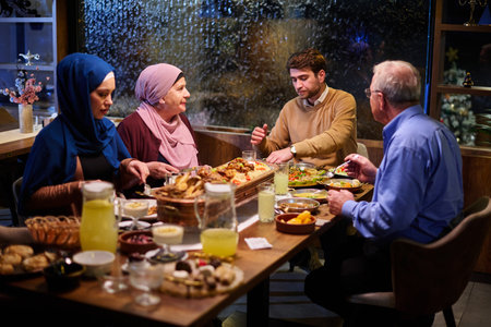 Muslim family gathering for having Iftar in Ramadan together