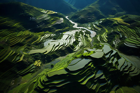 Aerial view of terraced rice fields, showing the beauty and complexity of traditional agriculture.