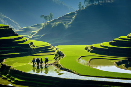 Terraced rice fields in Sapa, Vietnam. Sapa is a popular travel destination .ai generated