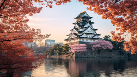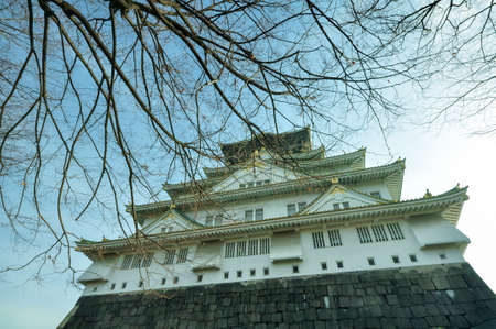 Osaka Castle with cherry blossom in autumn, Osaka, Japan