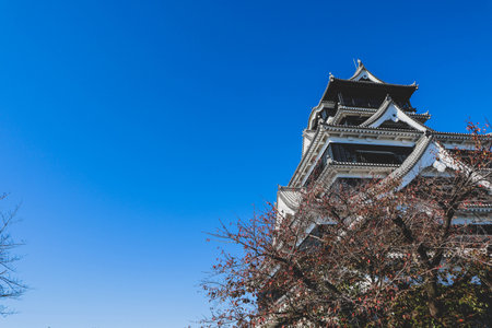 Scenic View of Kumamoto Castle, Famous Japanese Landmark and Cultural Heritage Site in Kyushu, Japan