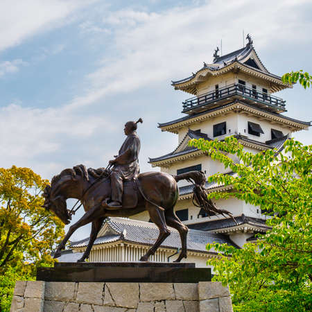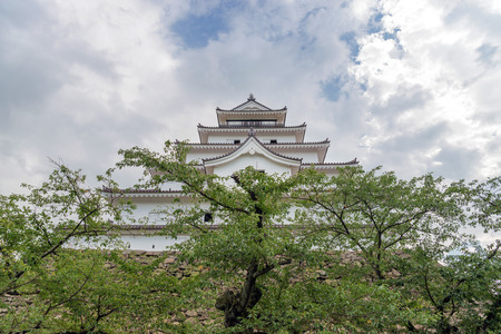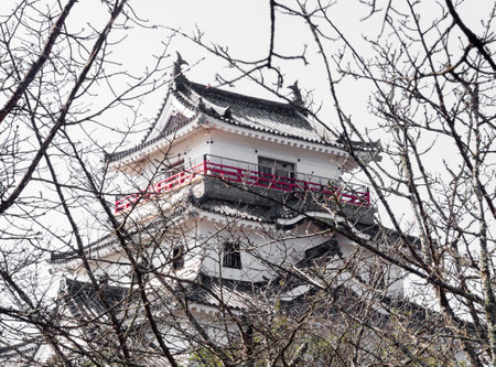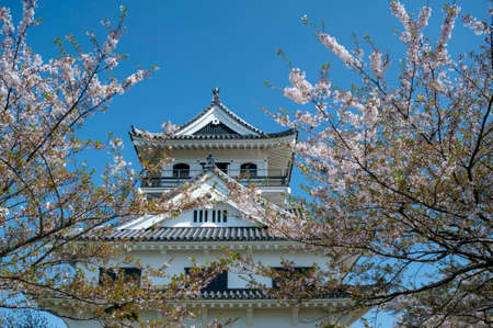 Inuyama castle historic building landmark in spring with beautiful cherry blossom.
