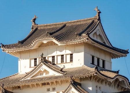 Traditional Japanese architecture with intricate details and a curved roof.