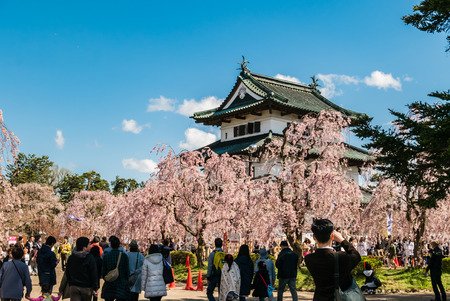 Aomori, Japan - April 30, 2016: Tourist at the Hirosaki Castle Park in Hirosaki, Aomori, Japan