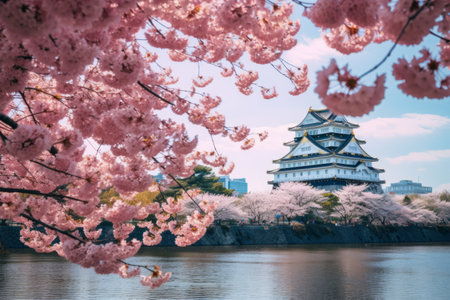 Blossoms in Bloom: Exploring the Serenity of Cherry Blossoms and Osaka Castle in a 3:2 Aspect Ratio
