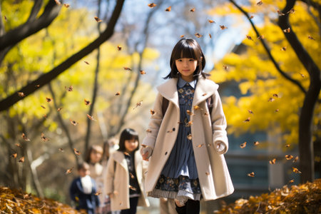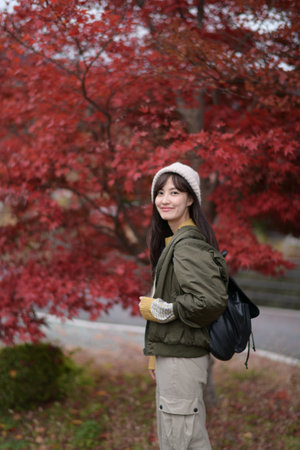 Beautiful autumn leaves and beautiful Japanese women in Japan