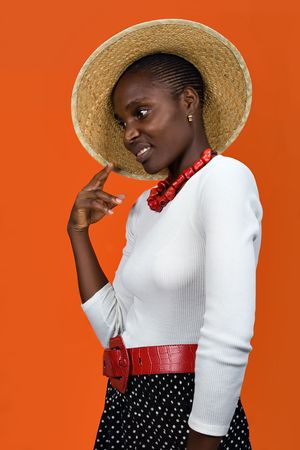 afro hairstyle, young beautiful African American girl with hat, people diversity series