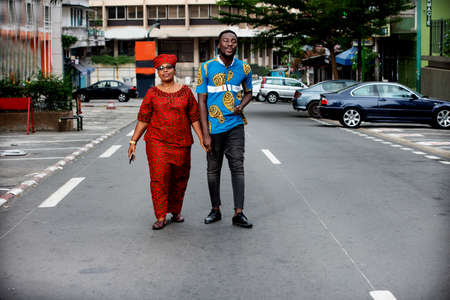 Handsome afro american man wearing traditional clothes in modern city.