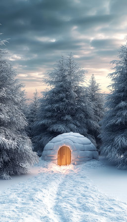 Stunning Winter Landscape with Traditional Igloos Surrounded by Snowy Spruce and Fir Trees