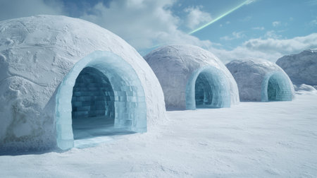 Icy igloo structures in a snowy winter landscape